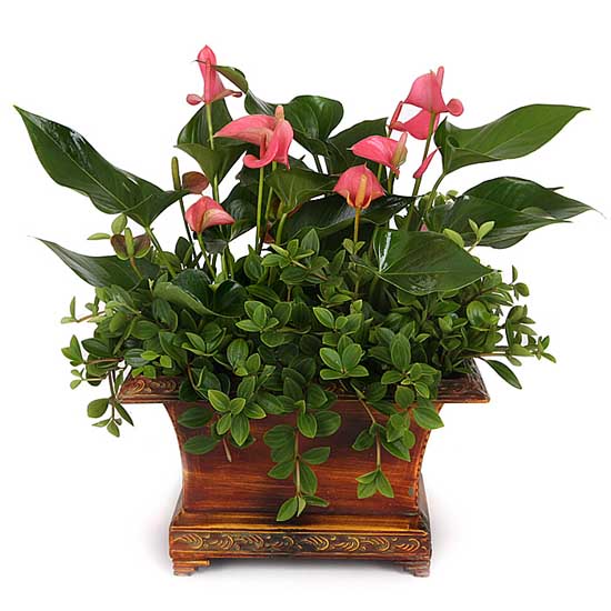 适宜温度:10℃以上 原产地:南美洲的热带雨林 描述:别名火鹤或安祖花,品种有粉掌、红掌等,性喜温暖、潮湿和半阴的环境,但不耐阴,喜阳光而忌阳光直射,不耐寒,喜肥而忌盐碱。最适生长温度为20-30℃,最高温度不宜超过35℃,最低温度为14℃,低于10℃随时有冻害的可能。叶绿,花似手掌,是上好的室内绿化植物品种。 |
